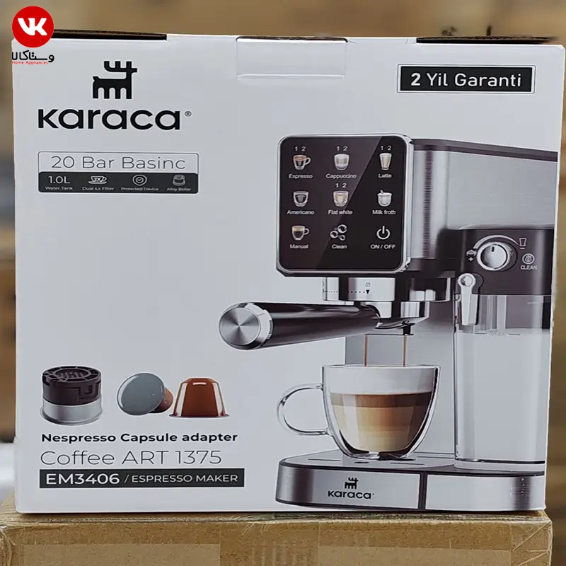 یکی از مواردی که هنگام خرید لوازم خانگی اهمیت زیادی دارد، قیمت محصول است. قیمت اسپرسو ساز کاراجا EM3406 در مقایسه با امکانات و کیفیت ساخت آن، بسیار مناسب و منطقی در نظر گرفته می‌ شود. در بازار لوازم خانگی، دستگاه‌ های اسپرسوساز با ویژگی‌ های مشابه معمولاً قیمت بالاتری دارند؛ اما کاراجا تلاش کرده با ارائه محصولی باکیفیت و قیمت رقابتی، گزینه‌ ای مناسب برای مصرف‌ کنندگان فراهم کند. اگر در حال بررسی قیمت اسپرسو ساز karaca مدل 3406 هستید، بهتر است علاوه بر قیمت، به امکانات، توان دستگاه و کیفیت ساخت آن نیز توجه کنید. در بسیاری از موارد، کاربران متوجه می‌ شوند که این مدل از نظر ارزش خرید یکی از گزینه‌ های مناسب در میان اسپرسو سازهای خانگی است. از محصولات دیگر وستا کالا نیز می توانید اسپرسو ساز یونی 358 را مشاهده کنید و با توجه به نیاز خود بهترین انتخاب را داشته باشید.